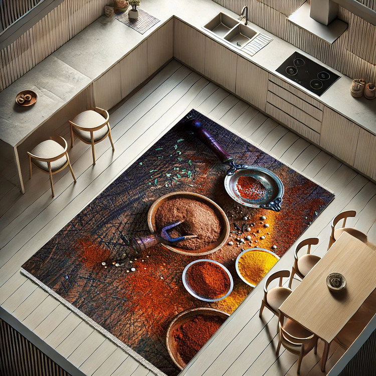 فرش چاپی ادویه‌های پودری - فرشینه و فرش آشپزخانه کد K128