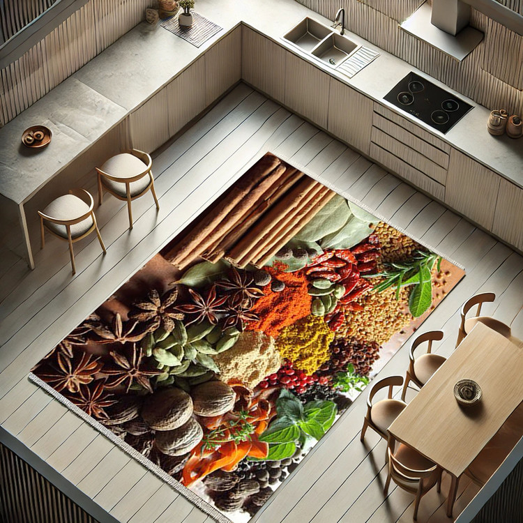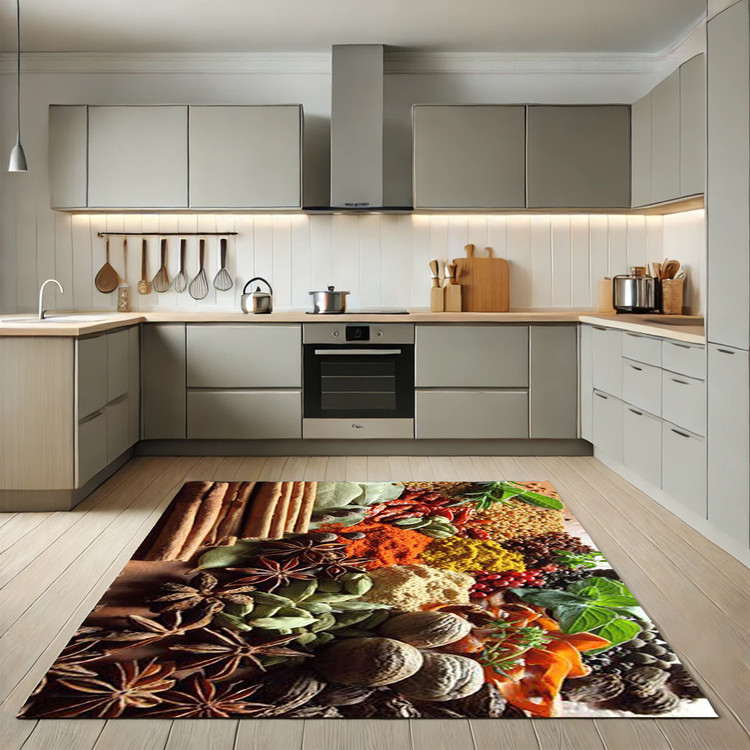 فرش عطریجات معطر کد K150 با الهام از عطریجات و ادویههای معطر، فضای آشپزخانه شما را با طراحیهای طبیعی و کلاسیک زینت میبخشد.
