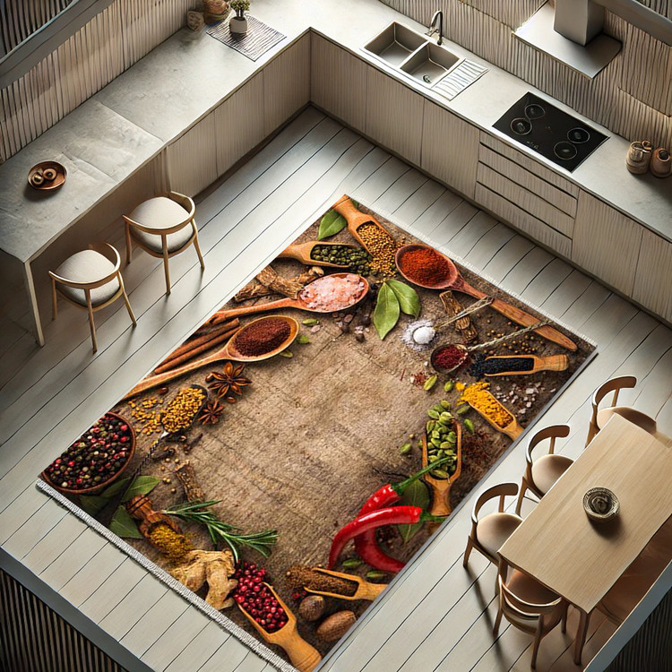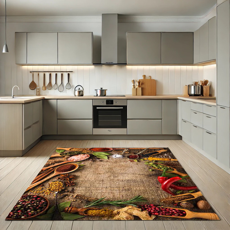 فرش ادویههای اصیل کد K151 با طرحهای الهام گرفته از ادویههای سنتی و طبیعی، حس اصالت و طبیعی بودن را به آشپزخانه شما اضافه میکند.