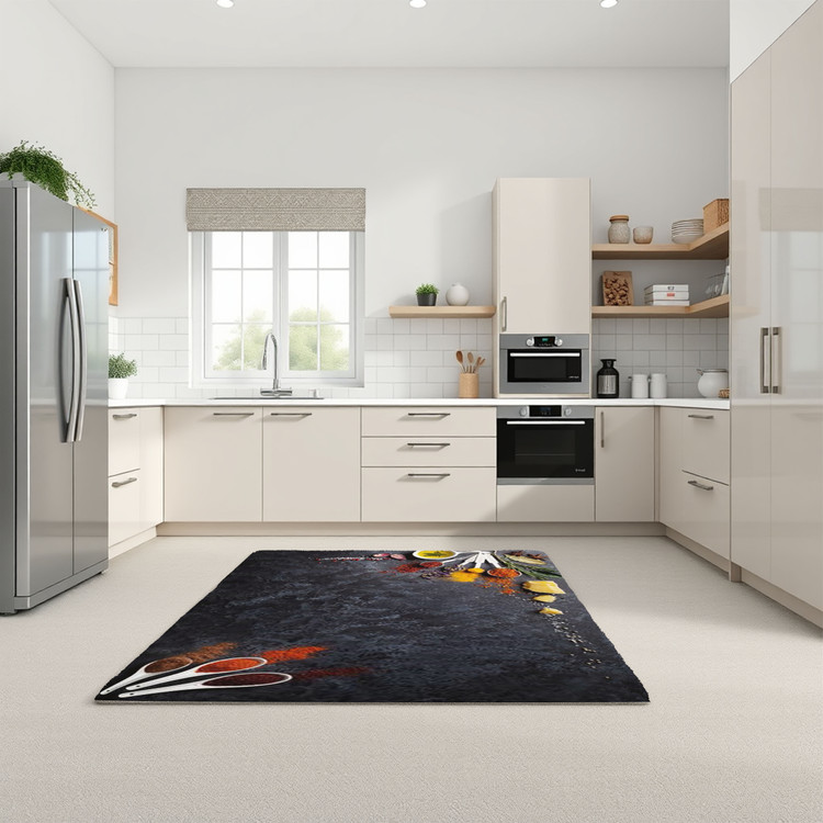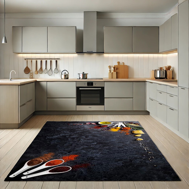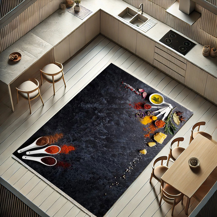 فرش ادویههای رنگین کد K157 با استفاده از رنگهای زنده و جذاب ادویهها، فضای آشپزخانه شما را با حسی از تازگی و طراوت پر میکند.