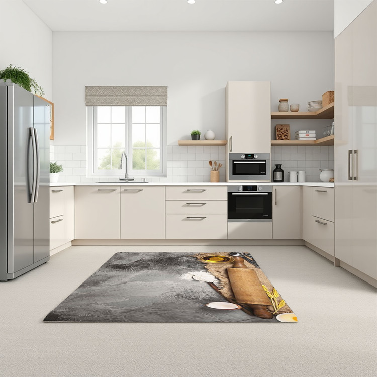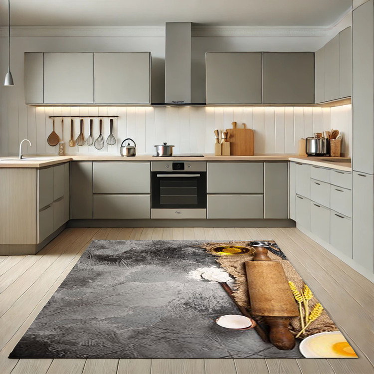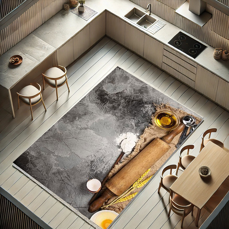 فرش نانواخانه سنتی کد K158 با الهام از ابزارهای نانوایی، فضایی دلپذیر و گرم را به آشپزخانه یا نانوایی شما اضافه میکند.