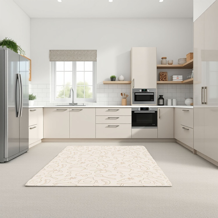 فرش نقشهای مینیمال کد K161 با طراحی ساده و لطیف از الگوهای مینیمالیستی، فضایی آرام و شیک به آشپزخانه شما میبخشد.