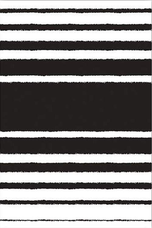 فرش راهراه سیاه و سفید کد K171 با طراحی ساده و مدرن از خطوط سیاه و سفید، برای فضاهای مدرن و مینیمال مناسب است.