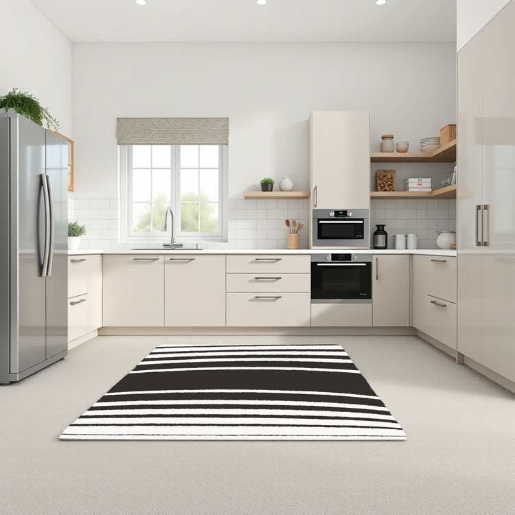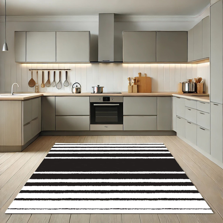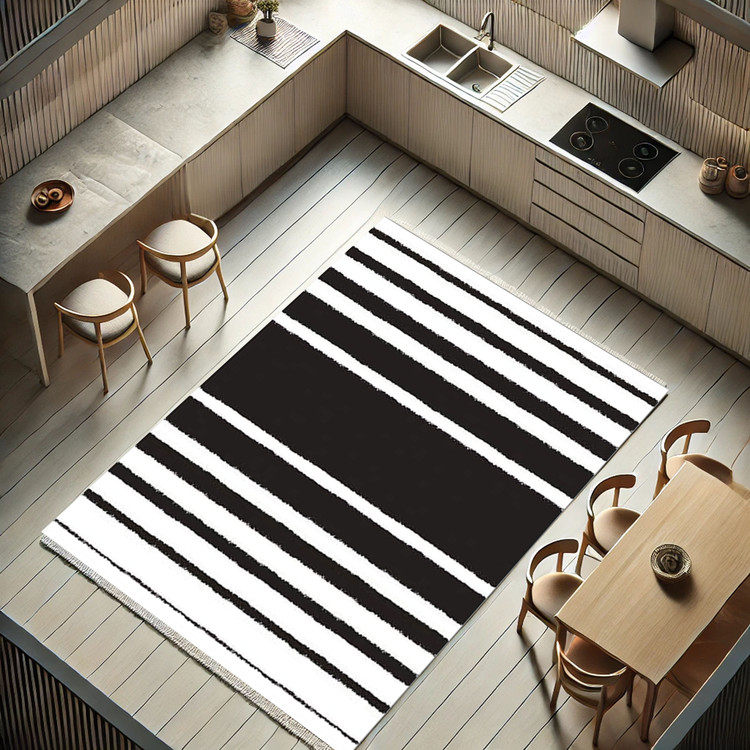 فرش راهراه سیاه و سفید - فرشینه و فرش آشپزخانه کد K171