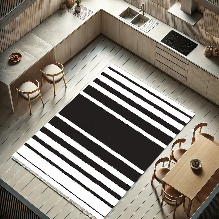 فرش راه‌راه سیاه و سفید - فرشینه و فرش آشپزخانه کد K171
