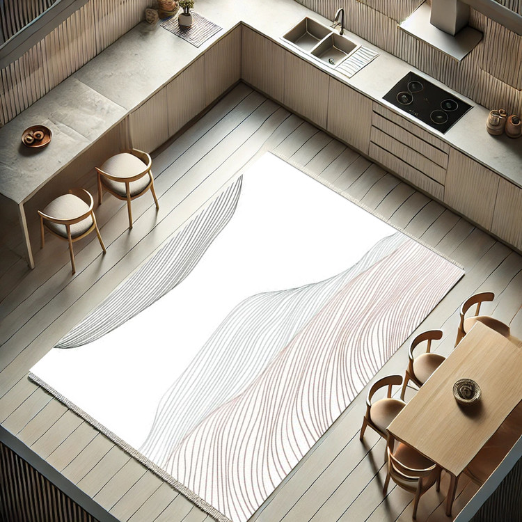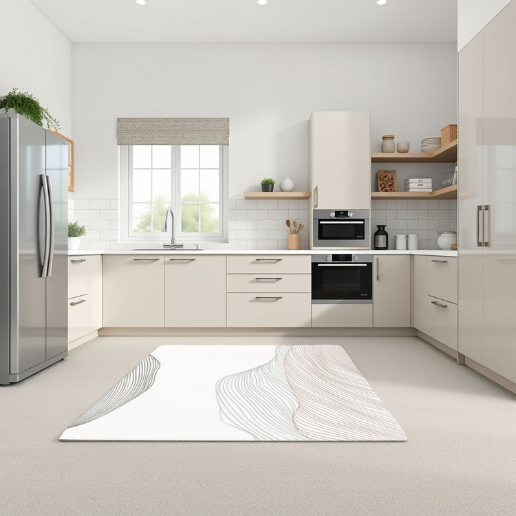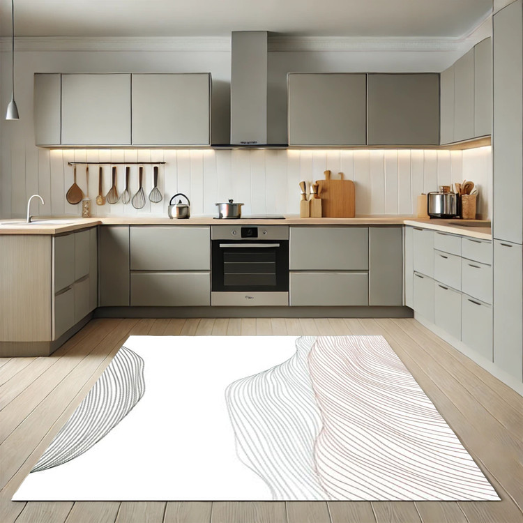 فرش موجهای ساده کد K178 با خطوط منحنی و طرحهای ساده، مناسب برای آشپزخانههای مدرن و مینیمال است.