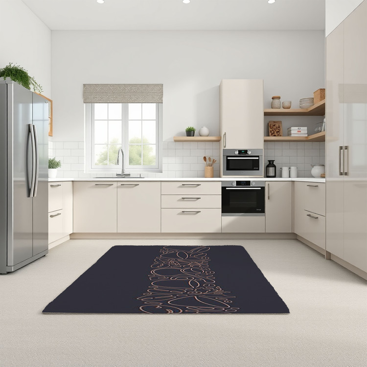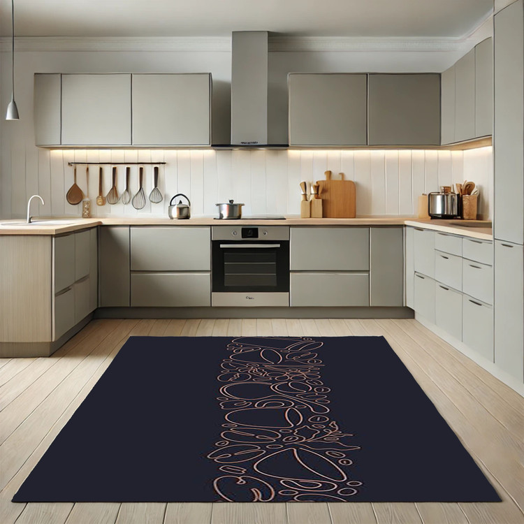 فرش خطوط مینیمال روی زمینه مشکی - فرشینه و فرش آشپزخانه کد K183