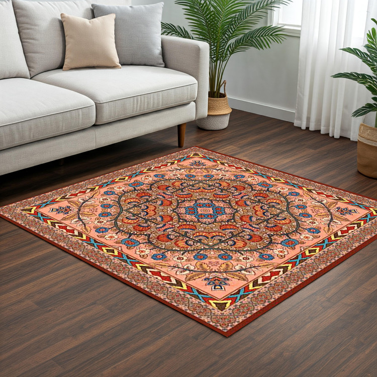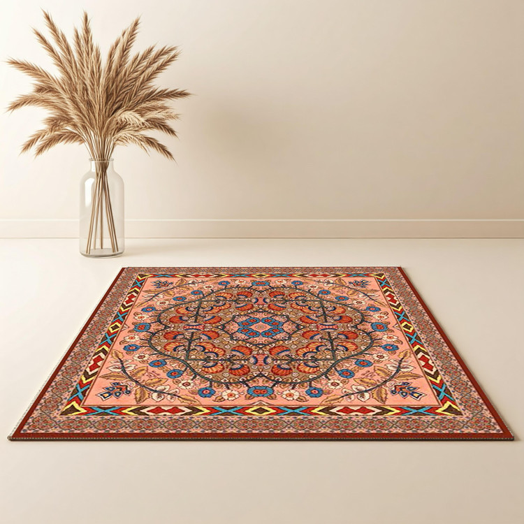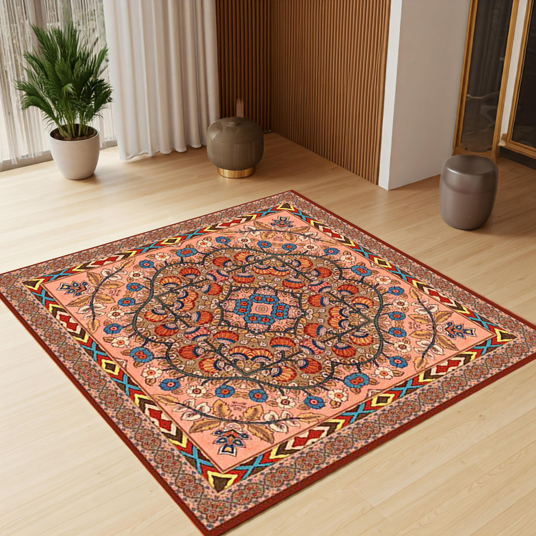 فرش گلباران سرخ - فرشینه و فرش مربعی کد Q119