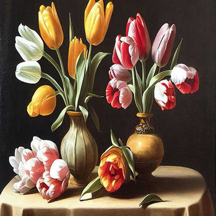 فرش گلآرایی با لاله کد Q130 با ترکیب رنگارنگی از لالهها، فضایی کلاسیک و زیبا به محیط شما میدهد و مناسب برای دکوراسیونهای هنری و سنتی است.