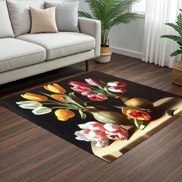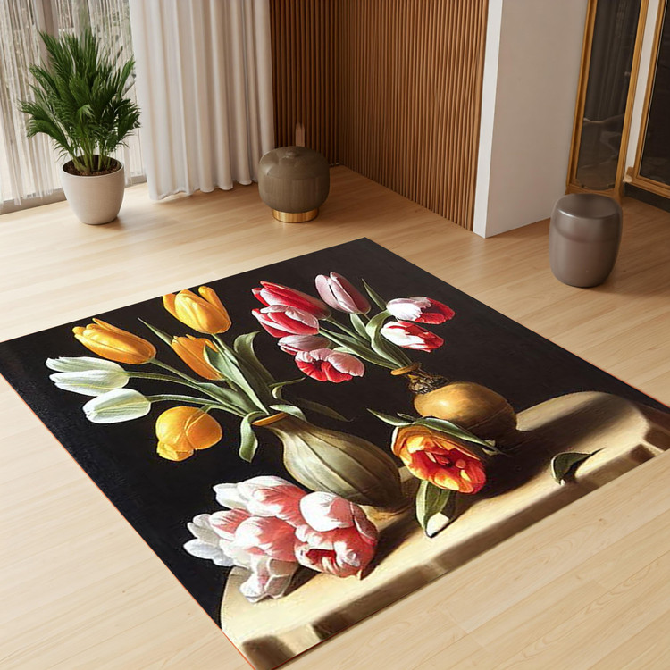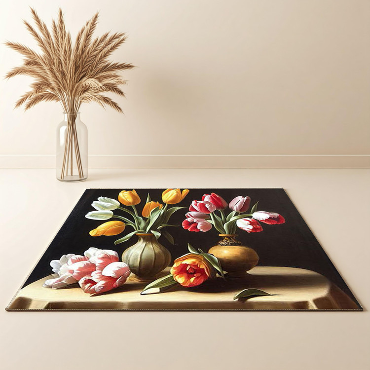 فرش گلآرایی با لاله - فرشینه و فرش مربعی کد Q130