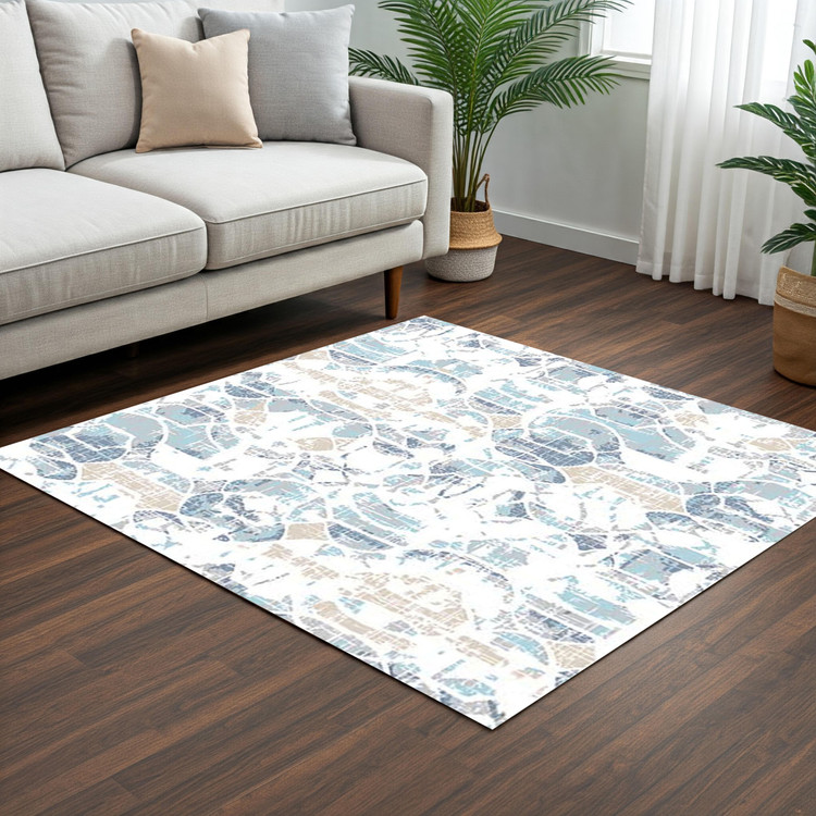 فرش آبی پرنیان - فرشینه و فرش مربعی کد Q134