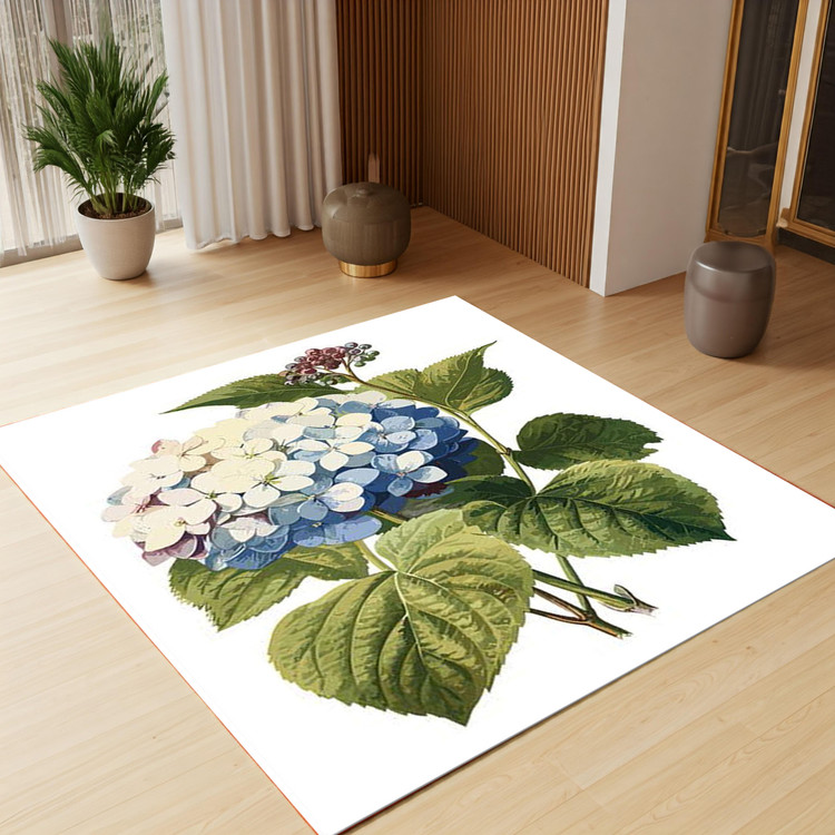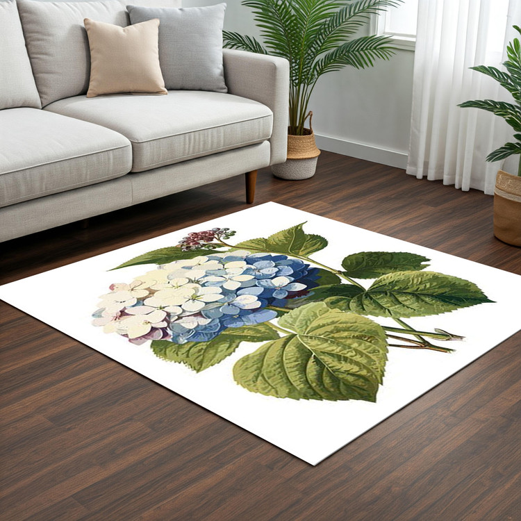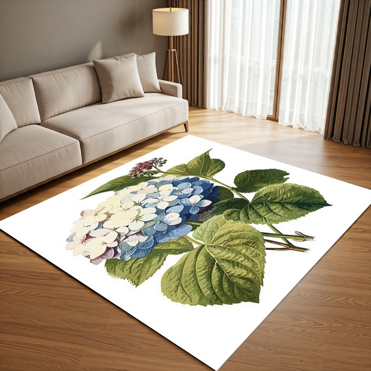 فرش شکوفهی تابستانی کد Q142 با طرح گلهای آبی و سفید، جلوهای از تابستان و طبیعت را به دکوراسیون خانه شما میآورد و فضایی لطیف و دلنشین ایجاد میکند.