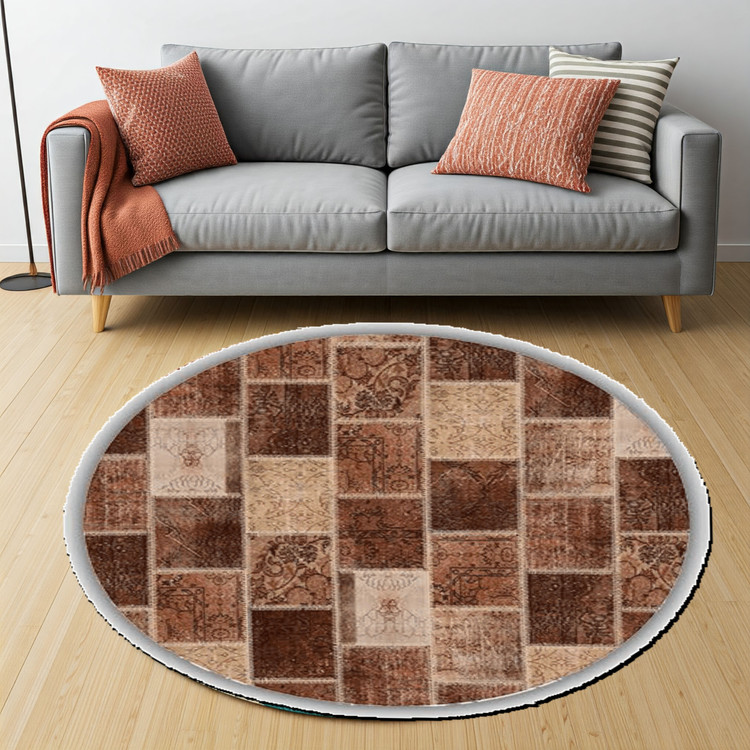 فرش خشتی قهوهای - فرشینه و فرش دایرهای کد D114