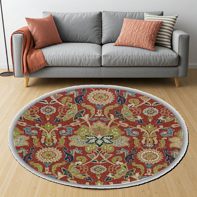 فرش دایرهای شفق شرقی کد D149 با رنگهای گرم و نقوش شرقی، مناسب برای فضاهای سنتی و کلاسیک است و حس اصالت و گرما را به دکوراسیون شما میآورد.
