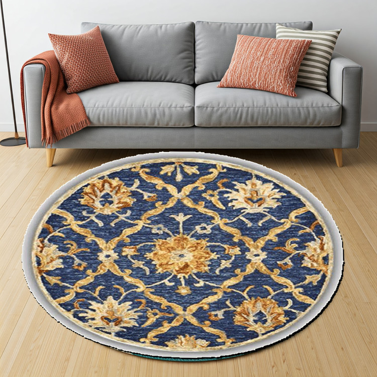 فرش دایرهای آسمان شب کد D151 با زمینه تیره و نقوش طلایی، همچون ستارگان در شب تاریک میدرخشد و جلوهای سلطنتی و فاخر به دکوراسیون شما میبخشد.