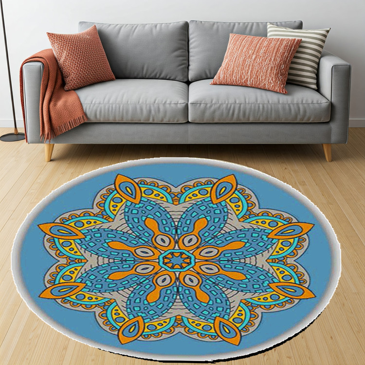 فرش دایرهای آفتاب فیروزهای - فرشینه و فرش دایره کد D154