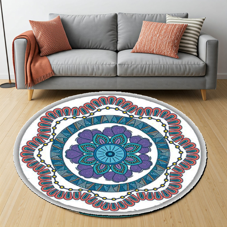 فرش دایرهای نیلوفر زمردین کد D163 با طراحی گلهای نیلوفر و رنگهای زیبا، حس آرامش و طراوت را به خانه شما میآورد.