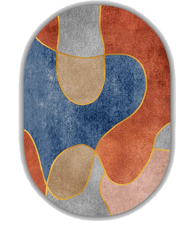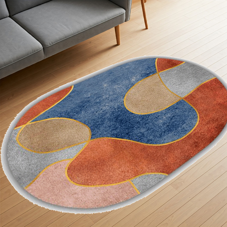 فرش بیضی افق آتشین کد B113 با رنگهای گرم و زنده، حس انرژی و حرکت را به محیط القا میکند.