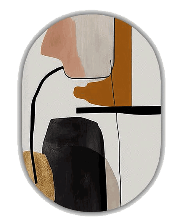 فرش بیضی نقشهای خاموش کد B121 با رنگهای خاکستری و خطوط هندسی ساده، انتخابی خاص برای دکوراسیونهای مینیمال و مدرن است.
