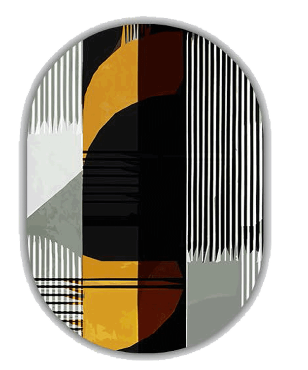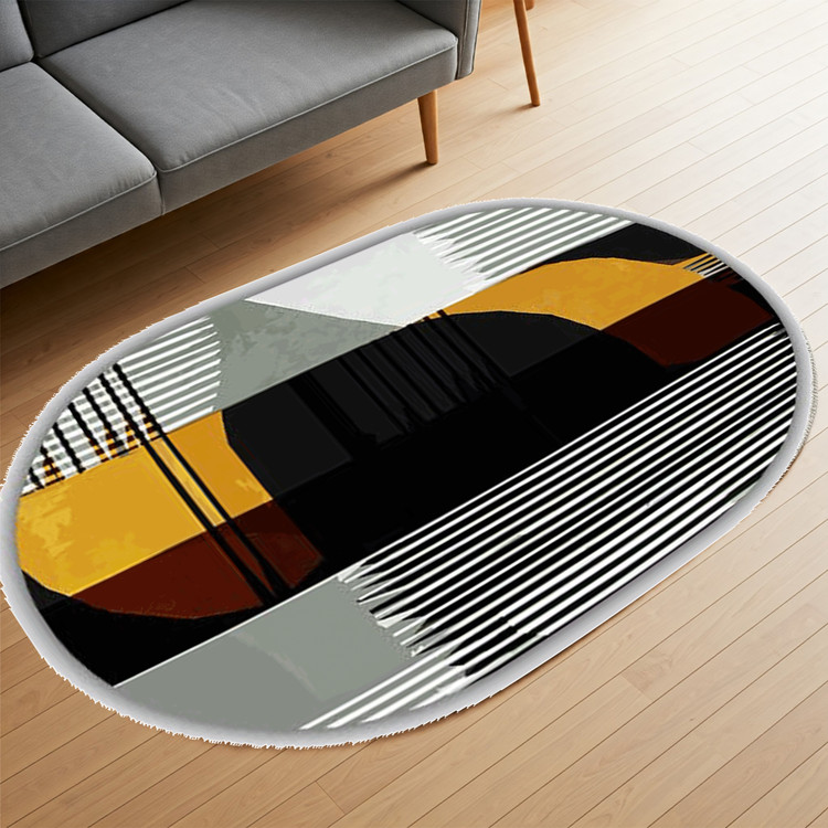 فرش بیضی رقص خطوط کد B123 با طراحی انتزاعی و خطوط تند، حس پویایی و جنبوجوش را به محیط القا میکند.