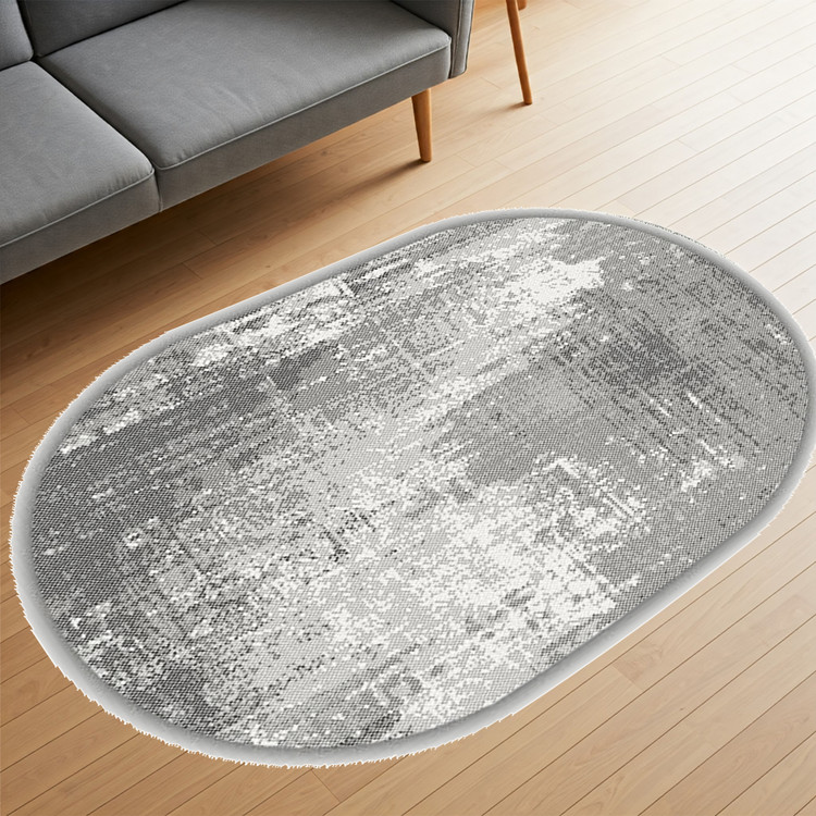 فرش بیضی بافت خاموش کد B134 با ترکیبی از رنگهای خنثی و بافتهای ساده، حس آرامش و سکون را به هر محیطی میآورد.