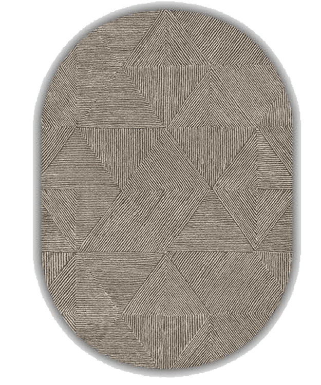 فرش بیضی خاکی هندسی کد B149 با طرحهای مینیمالیستی و رنگ خاکی، انتخابی مناسب برای دکوراسیونهای مدرن و مینیمال است که به فضا حس آرامش و سادگی میبخشد.