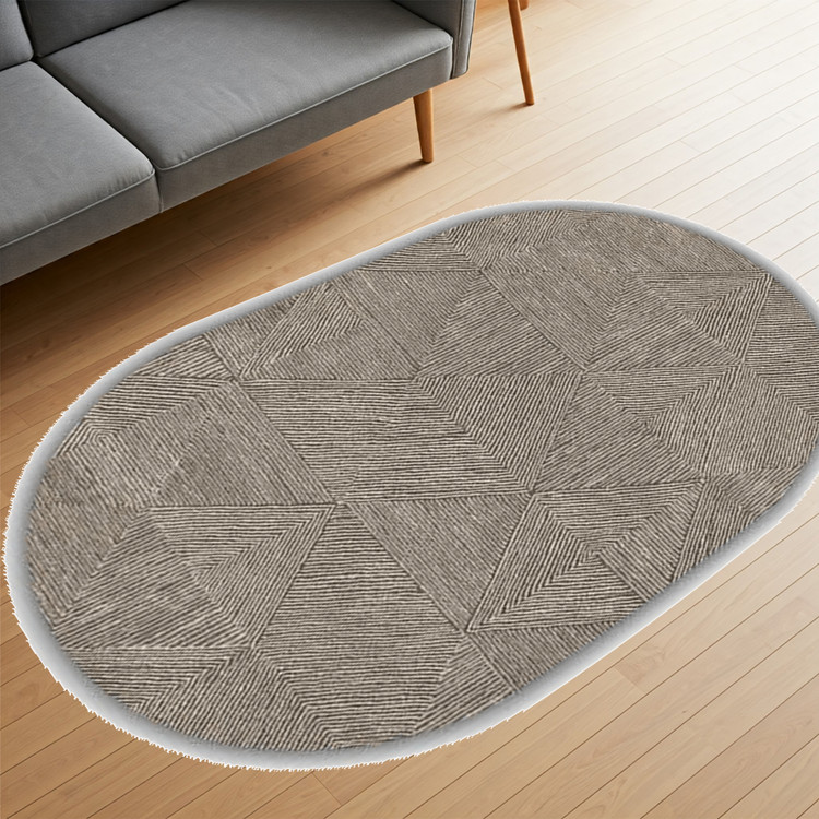 فرش بیضی خاکی هندسی - فرشینه و فرش بیضی کد B149