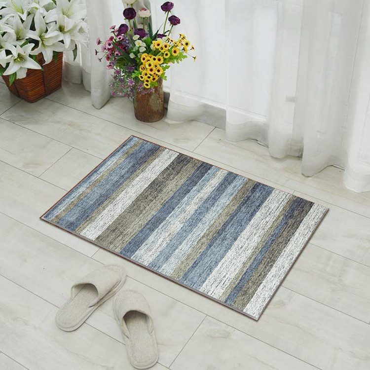 پادری راهراههای آبی کد P118 با طراحی راهراه و ترکیب رنگهای آبی و خاکستری، فضایی آرام و منظم به دکوراسیون شما میبخشد.