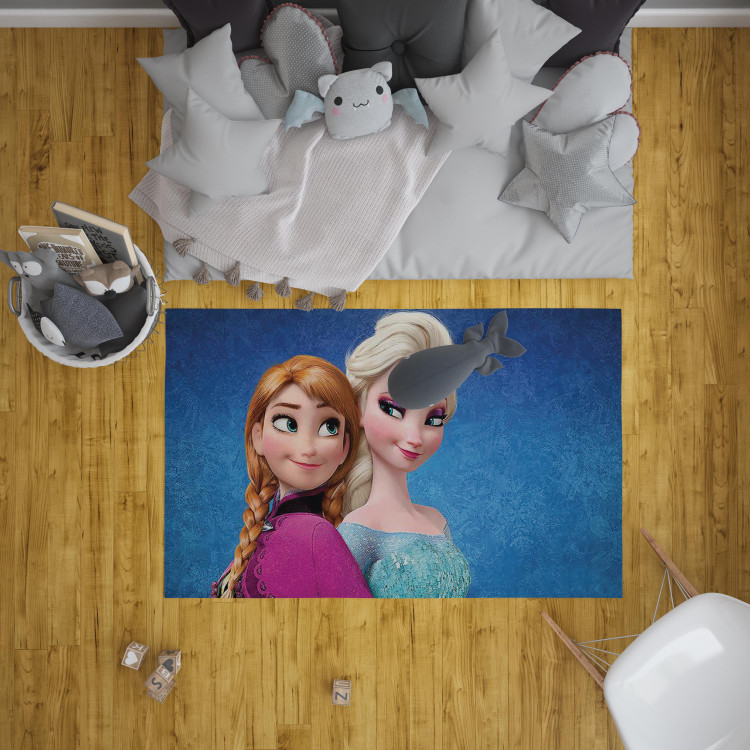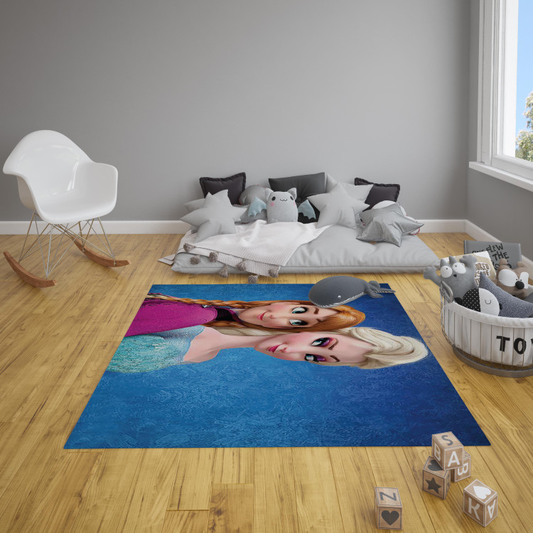 فرشینه مخمل ضد حساسیت اتاق کودک پرنسس السا و انا کد h189 - فرش چاپی اتاق کودک