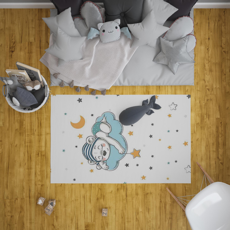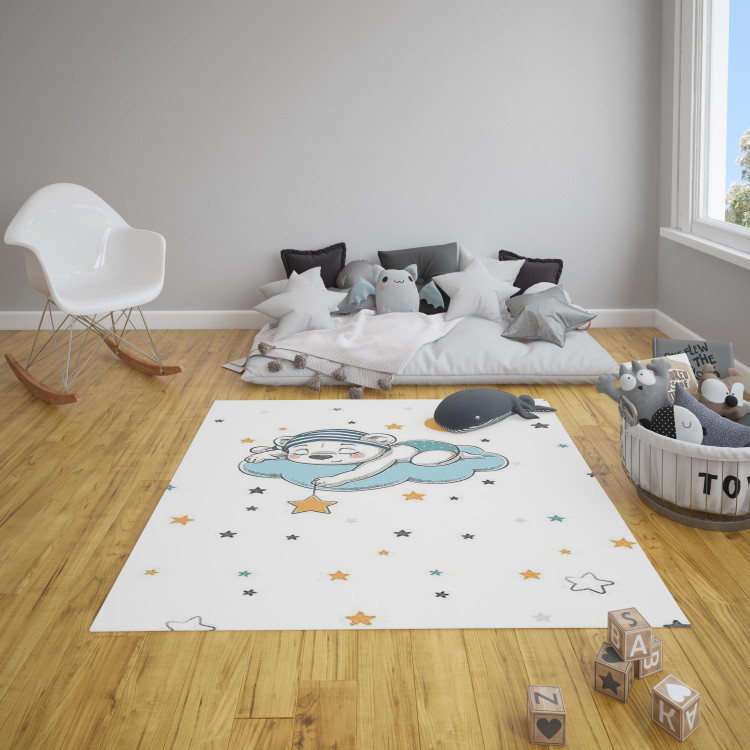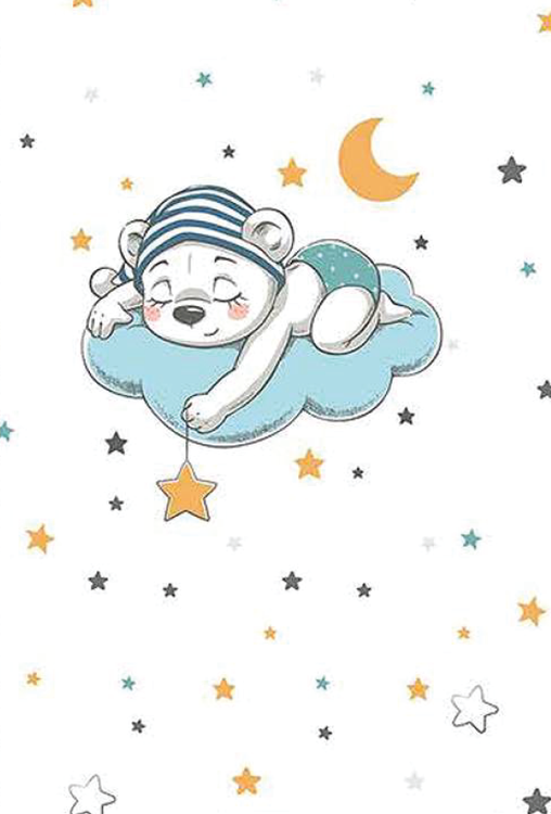 فرشینه مخمل ضد حساسیت اتاق کودک طرح خرس مینیمال کد h196 - فرش چاپی اتاق کودک