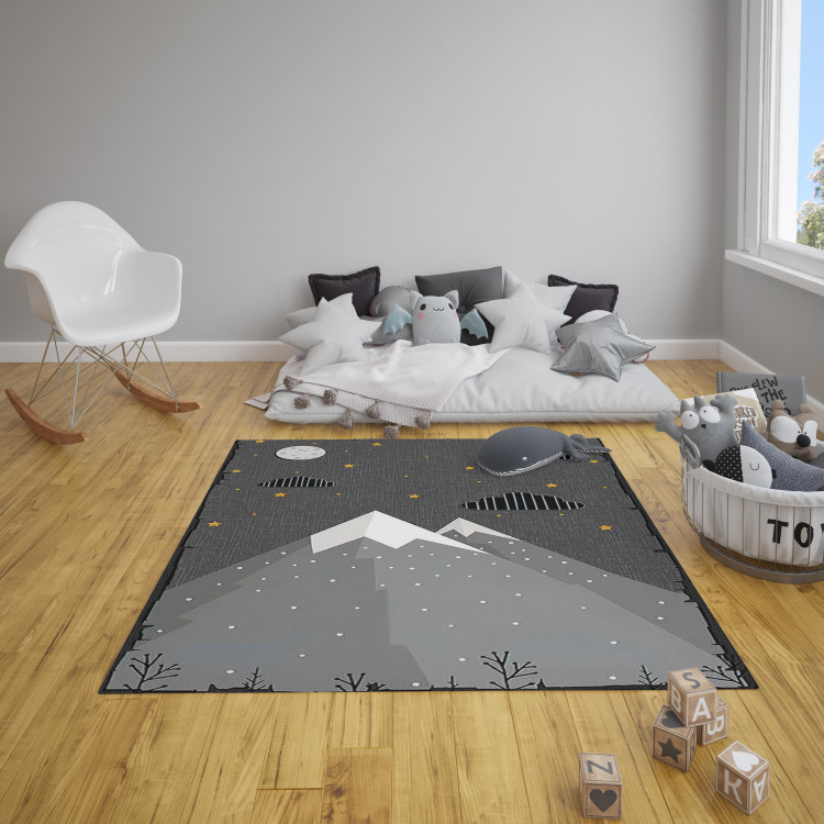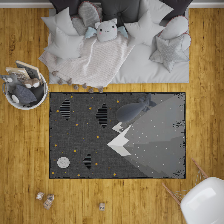 فرشینه مخمل ضد حساسیت اتاق کودک طرح کوه و ماه کد h289 - فرش چاپی اتاق کودک