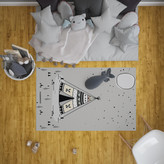 فرشینه مخمل ضد حساسیت اتاق کودک طرح چادر سرخ پوستی و ماه کد h290 - فرش چاپی اتاق کودک