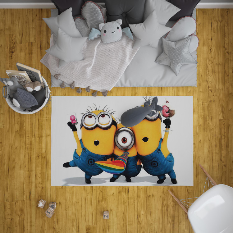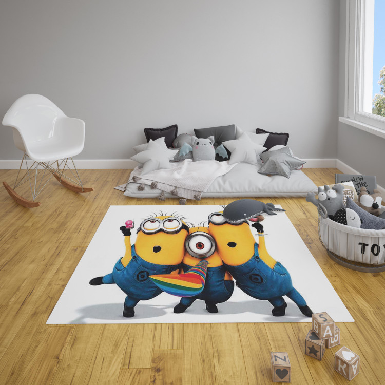 فرشینه مخمل ضد حساسیت اتاق کودک طرح مینیون ها کد h291 - فرش چاپی اتاق کودک