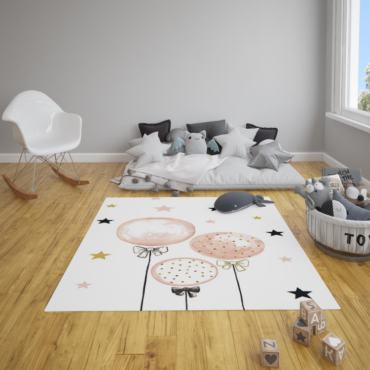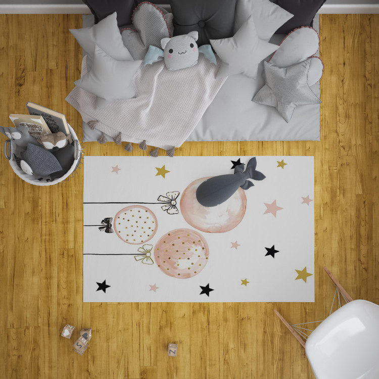 فرشینه مخمل ضد حساسیت اتاق کودک طرح باد کنک و ستاره کد h 349 - فرش چاپی اتاق کودک