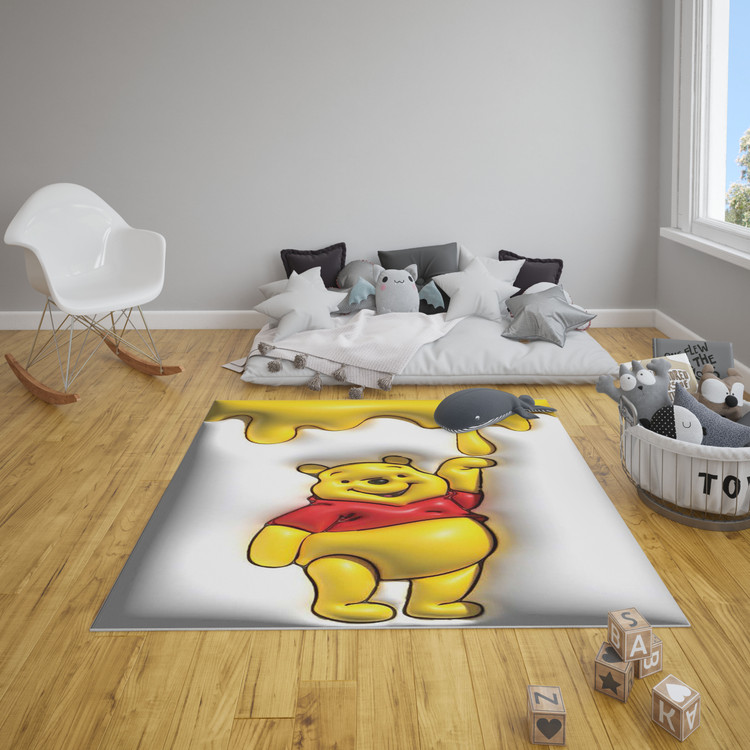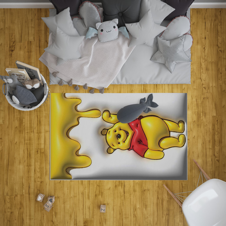فرش عسل شیرین با طرح شخصیت کارتونی دوستداشتنی و رنگهای ملایم، فضایی آرام و دلنشین برای اتاق کودک شما فراهم میکند.